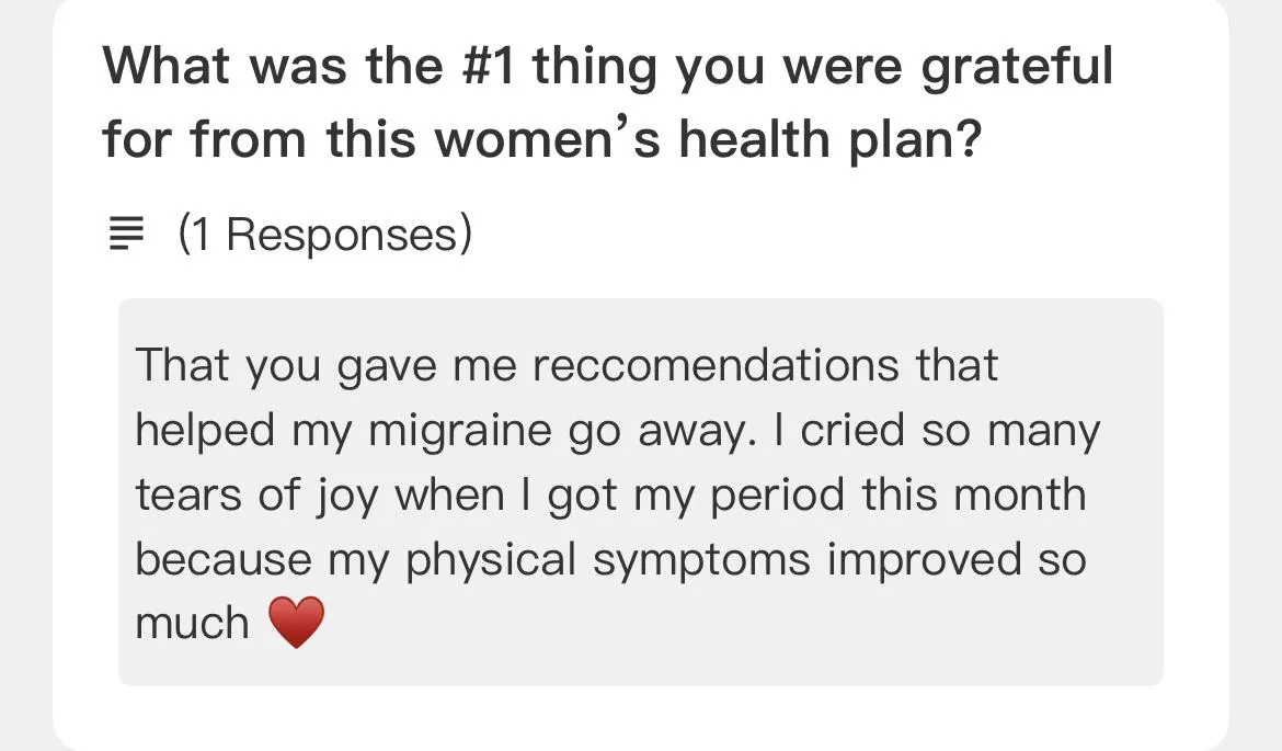 And the results? We helped women eliminate migraines, ditch medications, drop weight, improve their digestion, and most importantly—feel empowered in their bodies.